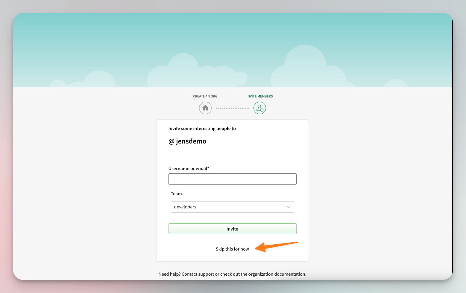 - You might be prompted to add users to the organization. You can skip this step for now.