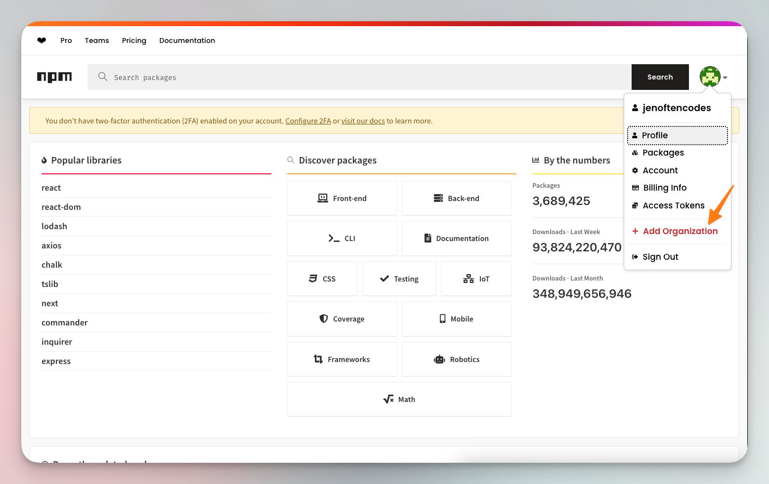 Create an npm account and set up your organization