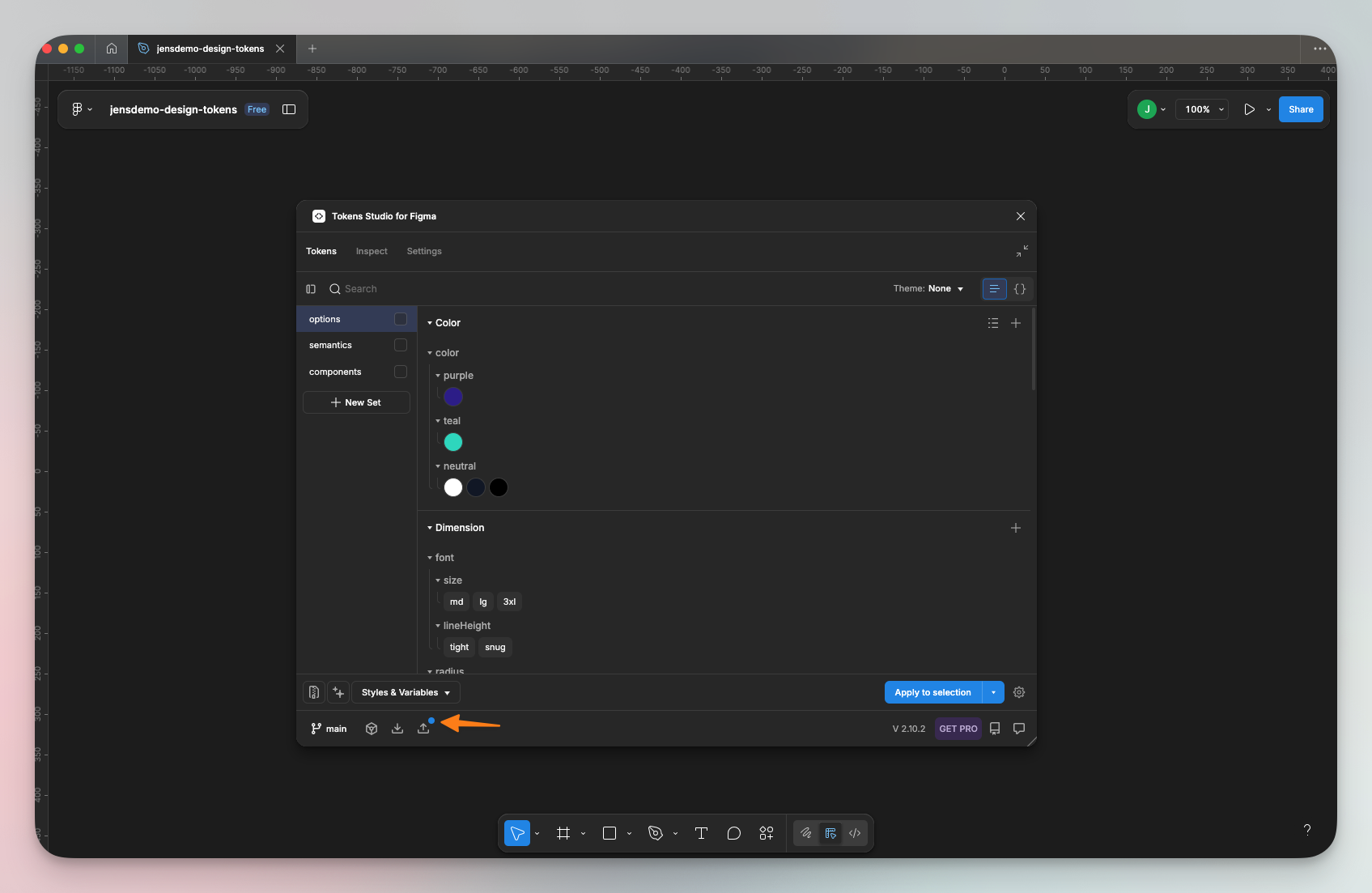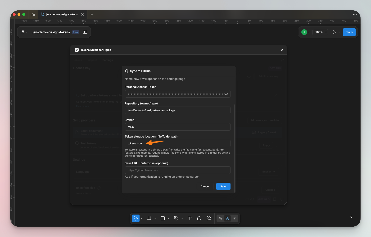 If you’re using the free version of the plugin, you’ll only be able to connect to your main branch. This means that updates from design to GitHub will be pushed directly to the main branch. To switch branches, you must upgrade to the Pro version of the Tokens Studio plugin.